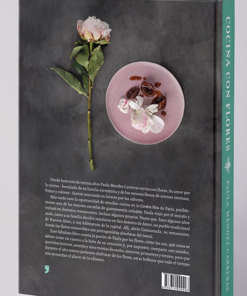 Desde hace más de treinta años Paula Mendez Carreras cocina con flores. Su amor por la cocina, heredado de su familia correntina y de los veranos llenos de aromas intensos, frutas y colores, fueron marcando su interés por los sabores. Más tarde tuvo la oportunidad de estudiar cocina en Le Cordon Bleu de París, posiblemente una de las mejores escuelas de gastronomía actuales. Paula viajó por el mundo y trabajó en distintos restaurantes, incluso algunos propios. Hasta que, hace algunos años atrás, junto a su familia decidió instalarse en San Antonio de Areco, un pueblo tradicional de Buenos Aires, a 100 kilómetros de la capital. Allí, abrió Corazonada, su restaurante, donde las flores comestibles son protagonistas absolutas del menú. Este fabuloso libro cuenta la pasión de Paula por las flores, cómo las usa, qué cosas se deben tener en cuenta a la hora de su consumo y, por supuesto, comparte con ustedes, queridos lectores, sesenta y siete recetas de otoño, invierno, primavera y verano, para que durante el año entero podamos disfrutar de las flores, estas bellezas que todo el tiempo nos recuerdan el placer de lo efímero.