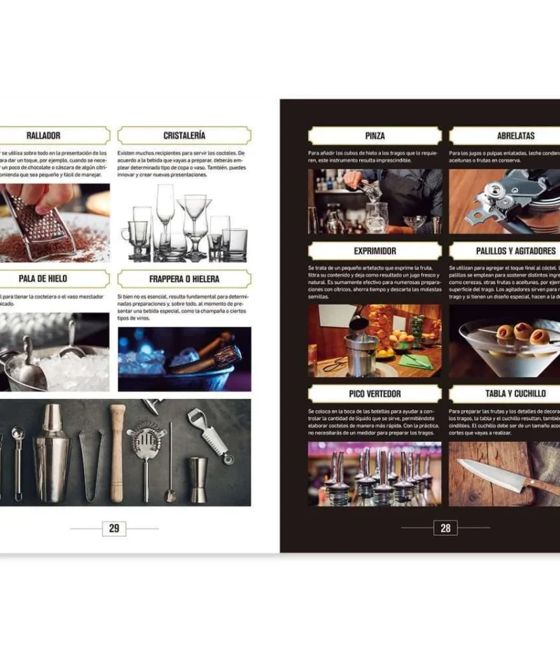 Este libro está orientado a aquellos que buscan nuevas combinaciones y recetas para sorprender a sus clientes y quienes desean brindar un servicio de excelencia: Desde consejos para montar un buen bar, hasta la más amplia variedad de tragos y bebidas, sin olvidar las técnicas y utensilios necesarios