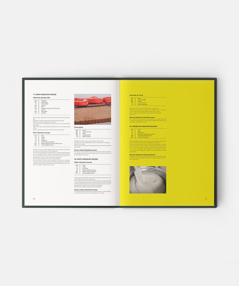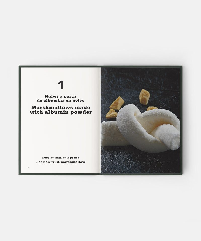 En este bloque se agrupan todas las recetas completas que se trabajan en el libro. Son en total 20 creaciones de pastelería moderna (tartas, postres, nubes, macarons, etc.) con más de 60 componentes, así como los montajes finales.