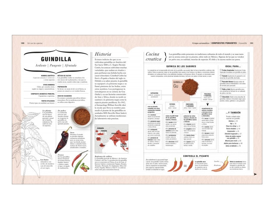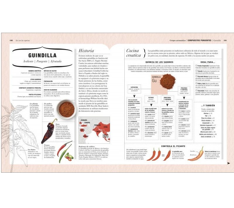 Este libro de cocina y especias es un regalo para nuestro paladar. Los diferentes perfiles de especias, organizadas por su componente de sabor dominante, muestran las especias mundiales más utilizadas junto a ideas de recetas, información de cómo comprarlas, usarlas y almacenarlas, además de la ciencia que hay para ayudarte a conseguir diferentes sabores y que así crees tus propias combinaciones. Finalmente, adjunta una selección de recetas utilizando innovadoras mezclas que enriquecerán tu paladar e inspirarán tus propias aventuras culinarias.