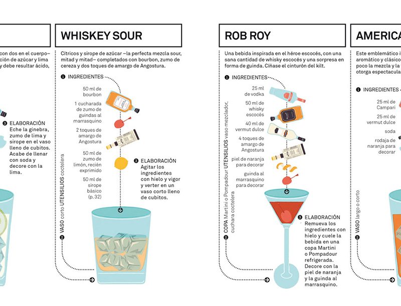 Manual de coctelería ofrece un listado de recetas de combinados populares, maravillas exóticas, preparados contemporáneos y ponches, además de un capítulo de cócteles sin alcohol para aquellos que quieran o deban prescindir de él sin renunciar a los sabores de una buena combinación ni a la diversión que conl