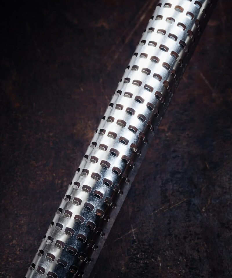 El rallador de especias con sus cuchillas fotograbadas ultrafinas, fabricado en EE. UU.,