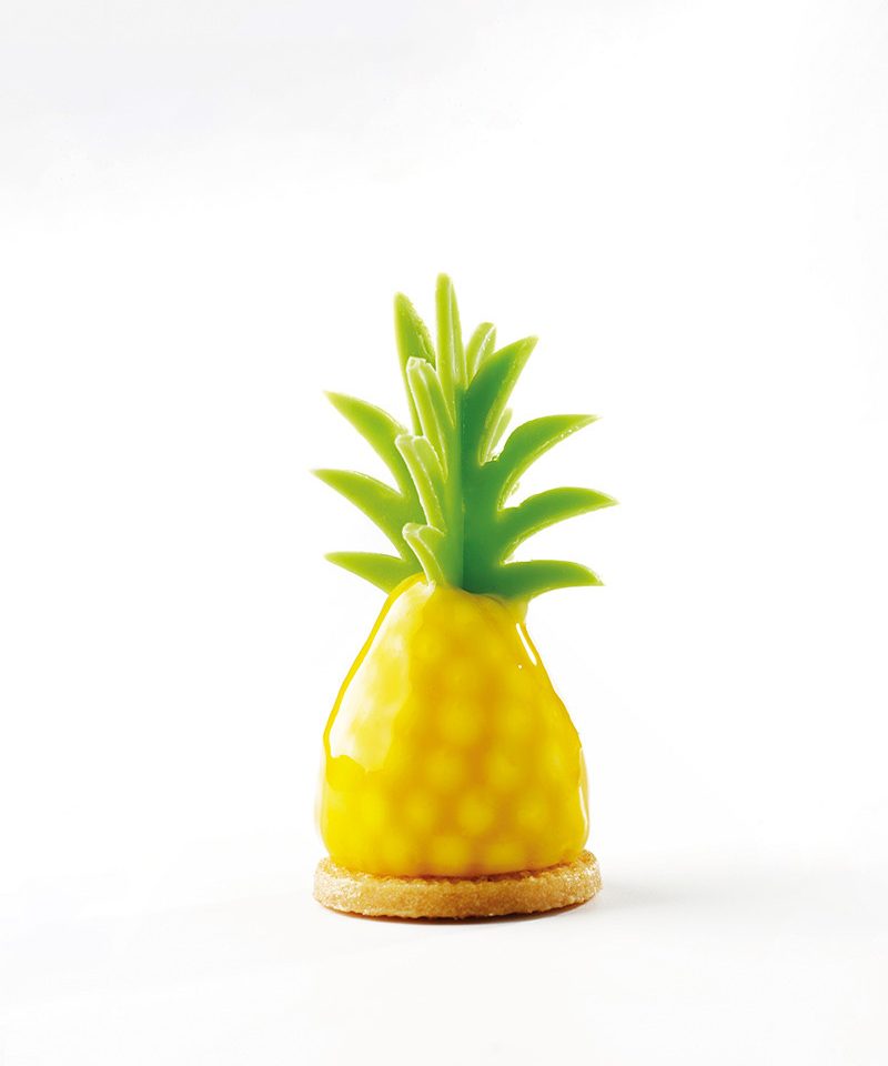 Sablés. Las bases crujientes son el punto de partida de una serie de bocados que incluyen un elemento principal y una decoración atractiva. En esta familia se sistematiza una manera de trabajar que tanto sirve para desarrollar trampantojos, productos coloristas y glaseados y propuestas con elementos frescos a la vista.