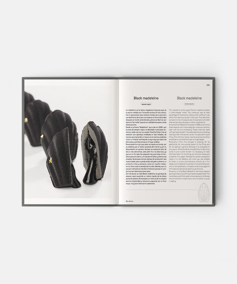 El responsable de postres del Restaurante Lasarte de Barcelona, tres estrellas Michelin, merecedor del premio Mejor Chef Pastelero del Mundo en 2020 (Best Chef Awards), despliega un amplio repertorio de creaciones de autor repartidas en ocho grandes familias: