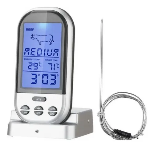 Sistema simple, conveniente y practico de transmision inalambrica, controlando la temperatura a distancia. Perfecto para carnicos mediante sus distintos programas (ternera, cordero, cerdo, pavo, etc) con diversos tipos de coccion. Podes establecer la temperatura objetivo o el tiempo de coccion y este te indicara con una alarma cuando haya llegado el rango indicado.