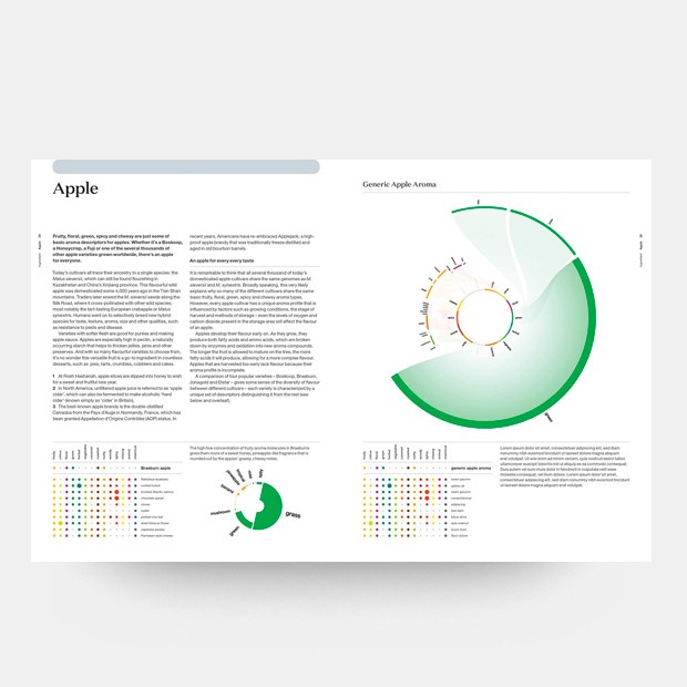 El libro también cubre características clave de los alimentos, perfiles de aromas, platos clásicos, combinaciones contemporáneas, explicaciones científicas, características especiales y contribuciones de algunos de los mejores chefs del mundo para los 150 ingredientes principales, y mucho más.